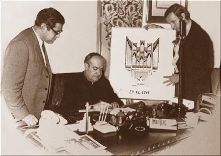 en presencia del maestro organero Gabriel Blancafort (izq.)